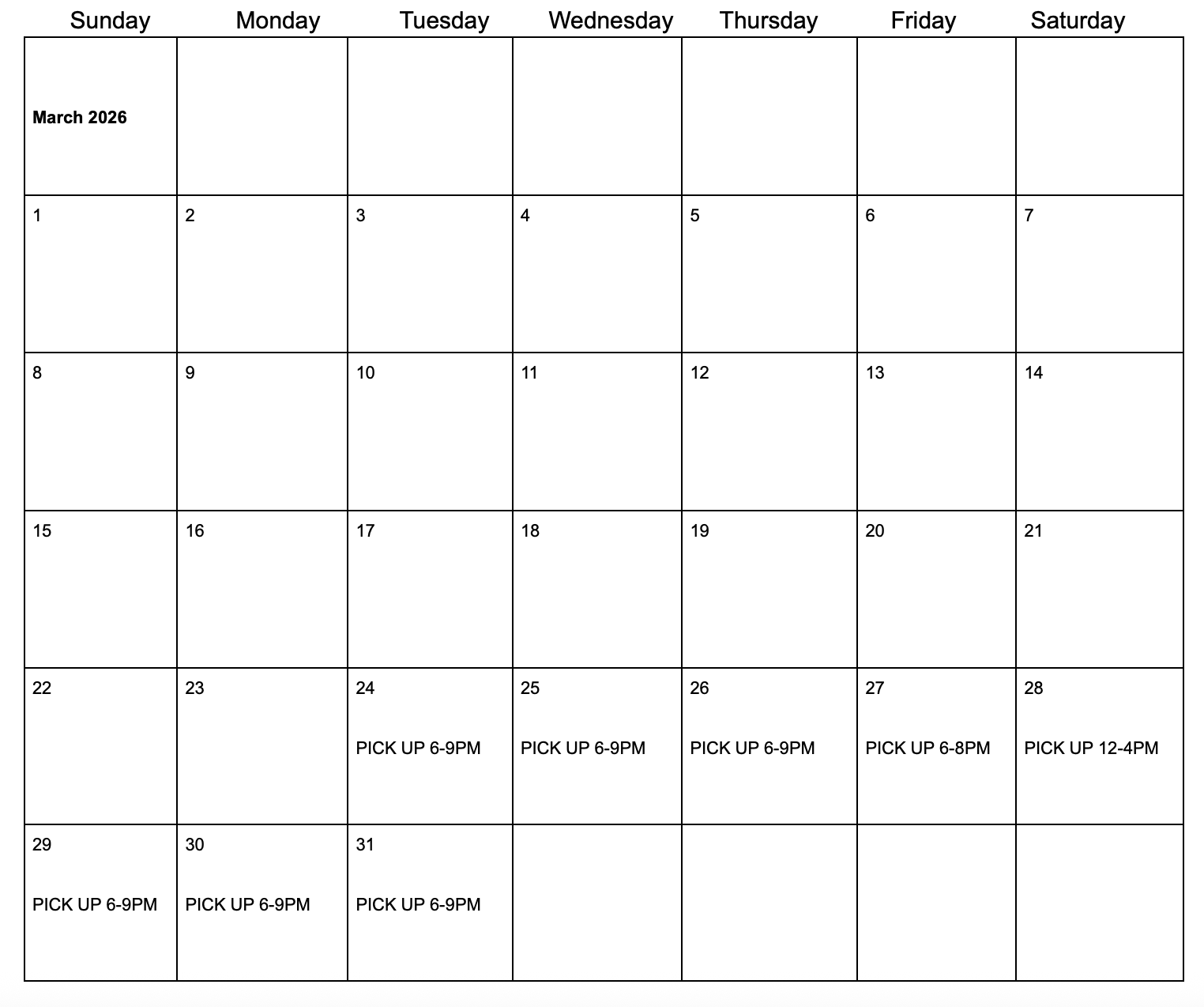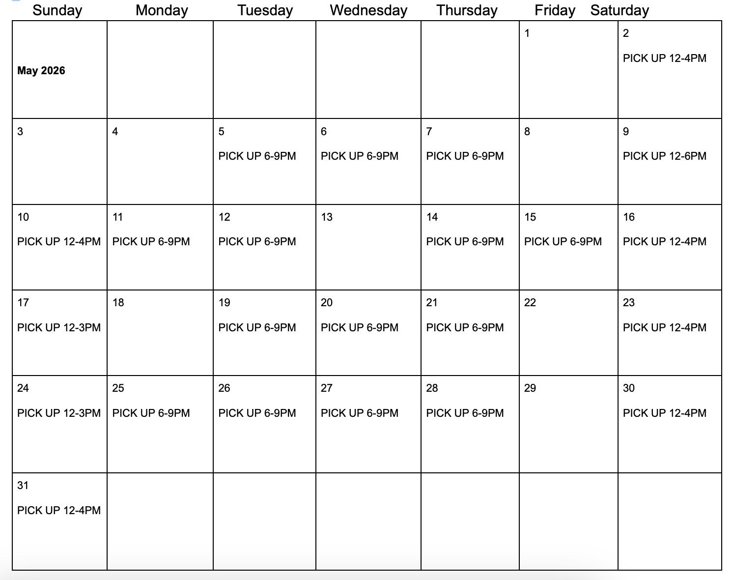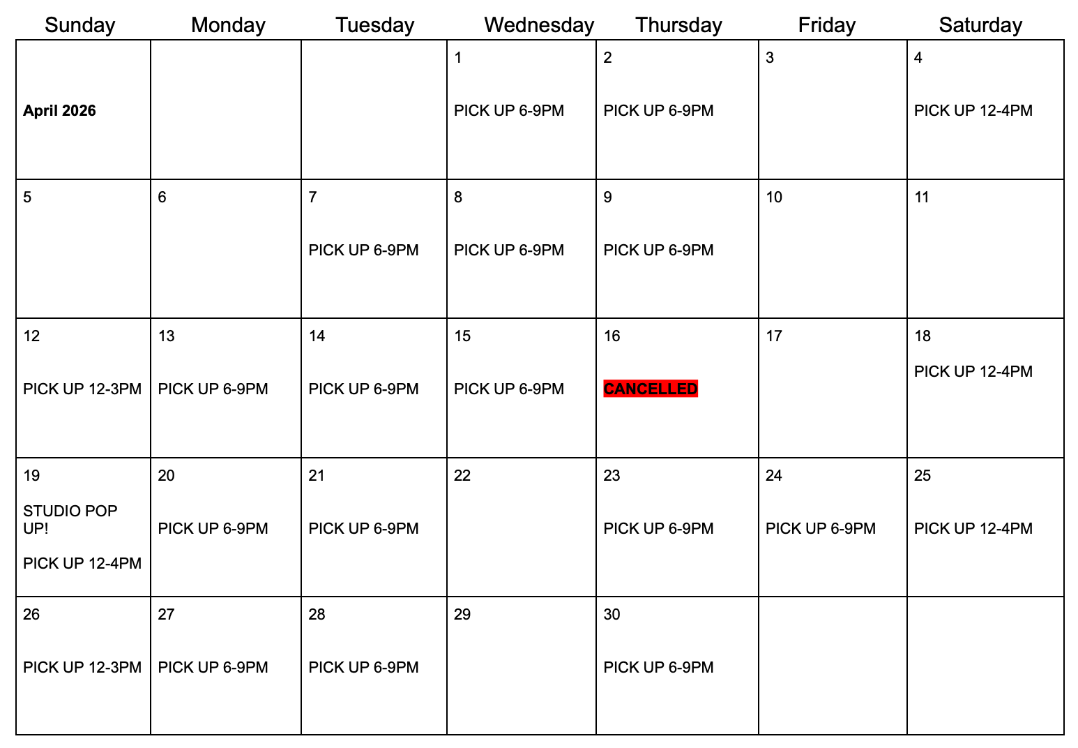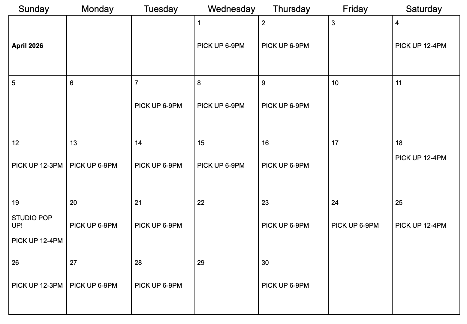 If it’s been 6 weeks since the end of your pottery class, your pieces are ready to pick up! You can stop by during any of these class times to get them :) Please note we do not have any boxes or packing material, so if you need it, bring it with you.